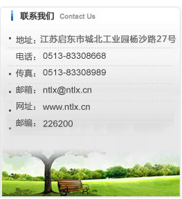 電話:0513-83209668 傳真:0513-83308989 網址:www_ntlx_cn.chengnuobao.cn E-mail:ntlx@ntlx.cn